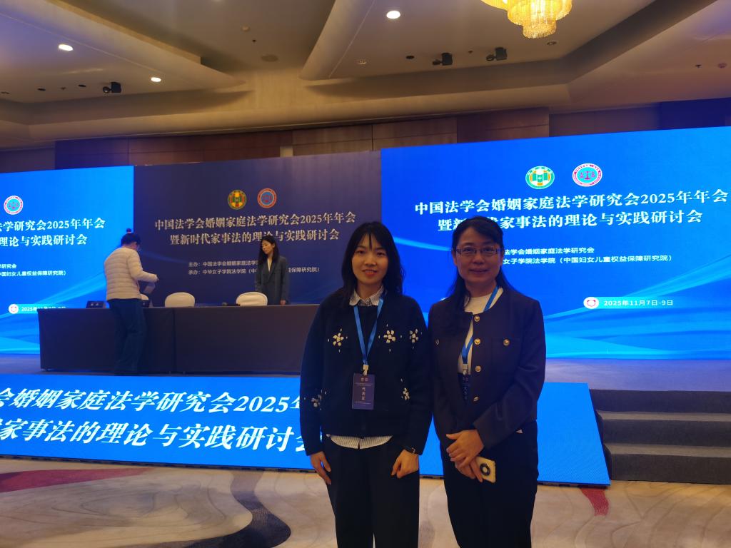 公司杨金颖副教授与冯源副教授参加了本次年会。本次年会由开幕式、主题学习、主旨报告、主题研讨、青年论坛等环节组成,婚姻家庭法学研究会常务副会长龙翼飞代表研究会作2024-2025年度研究会工作报告。学术年会特设追思环节,研究会全体与会人员共同追思已故会长、中国政法大学人权研究院教授夏吟兰。在主题研讨中,各位同仁围绕“《民法典》婚姻家庭编法律适用中的价值理念和思维方法”“《民法典》继承编适用中的重点难点问题”“数字化、人工智能对家事法的机遇、挑战及其应对”等方向各抒己见,冯源结合“父母处分未成年子女财产法律效力的解释论”做了主题发言。