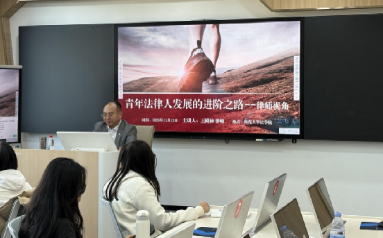 王律师还分享了“四商”理念——智商、情商、法商、德商,鼓励青年学子在专业积累之外,“知政治、讲政治、学政治”,拓宽专业视野,塑造个人品牌,培养领导力。他结合亲身参与的多个重大项目,阐释法律人如何在服务国家战略与社会治理中实现自我超越。