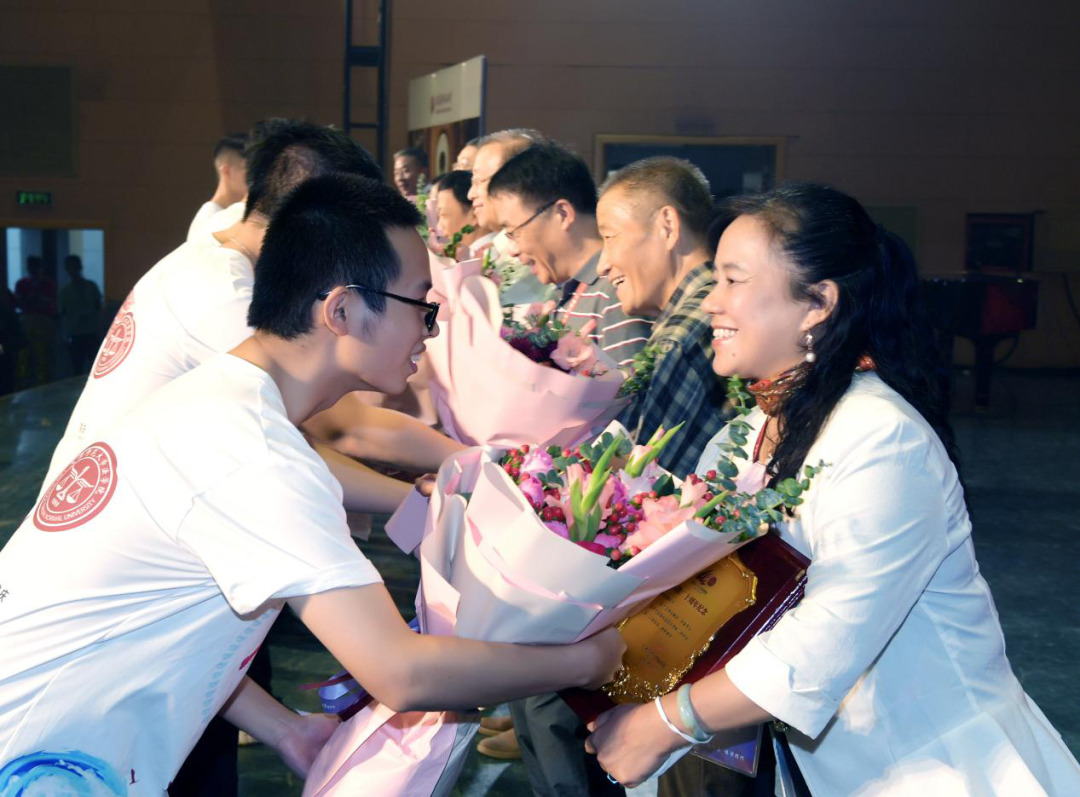 致敬从教三十周年的教师,颁发纪念牌并献花