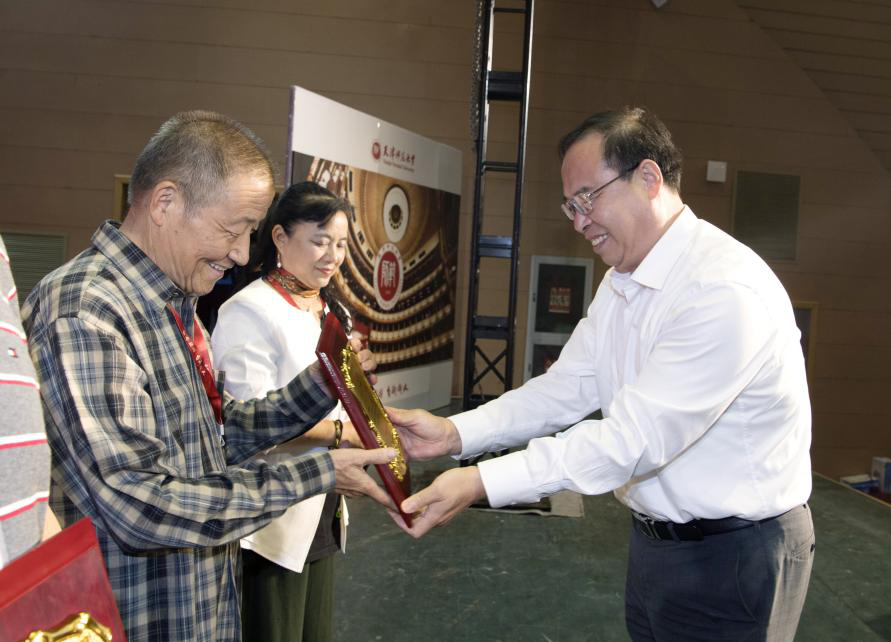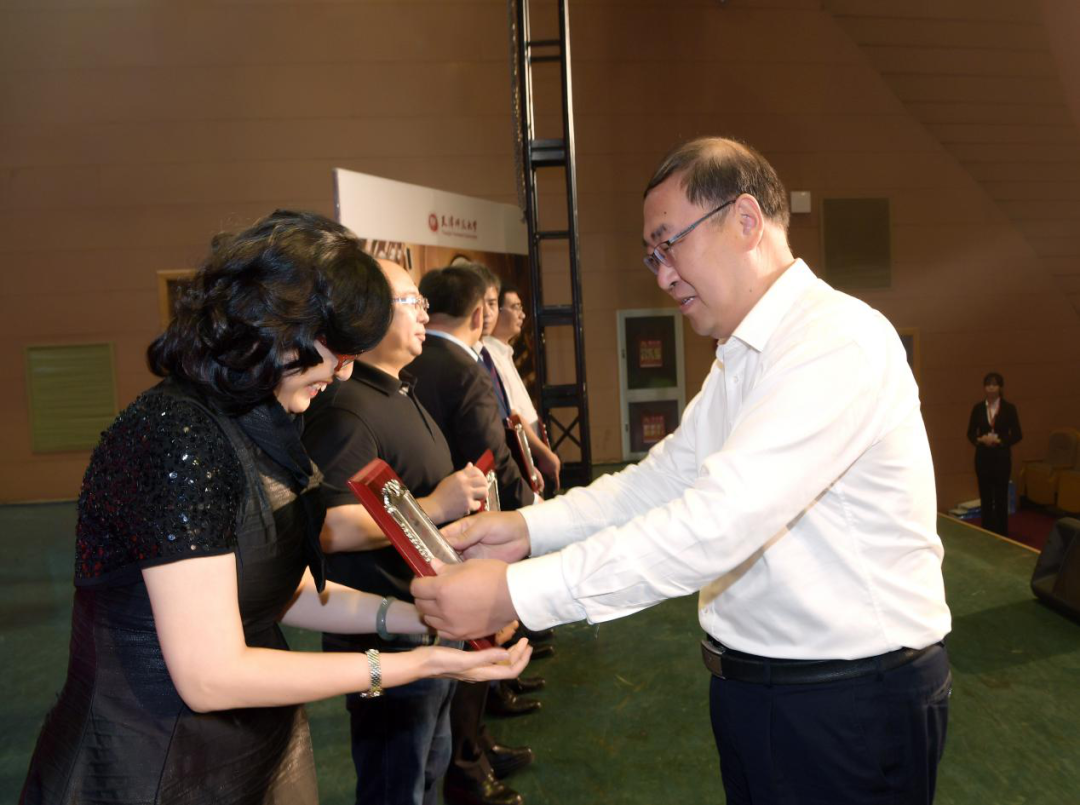 天津市第二中级人民法院经理康建茂、河北大学副董事长孟庆瑜向为yl7703永利集团发展作出突出贡献的社会人士和员工代表颁发捐赠纪念牌。