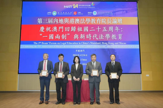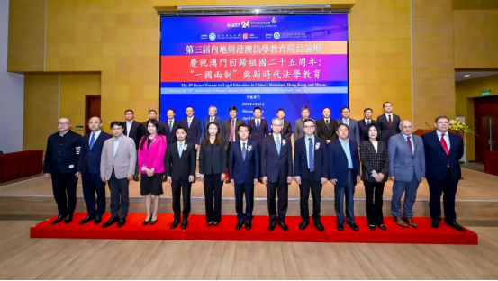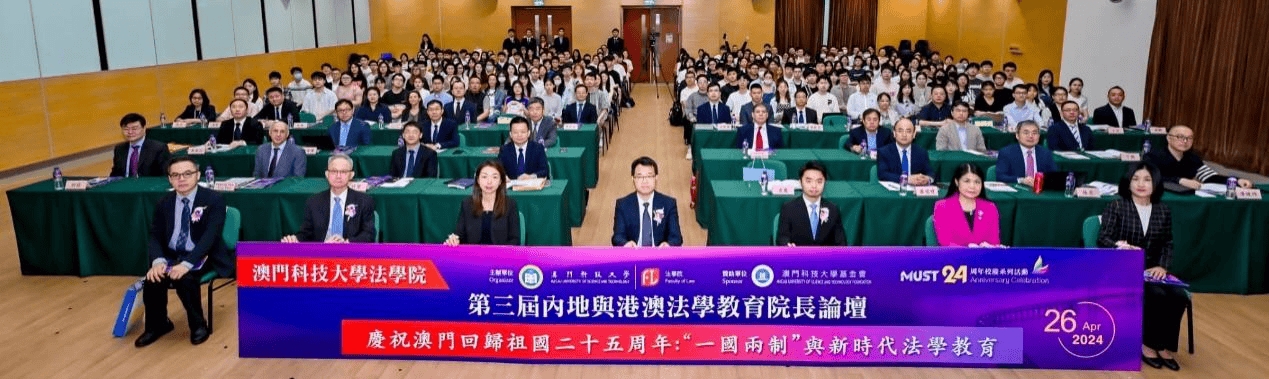 为庆祝澳门回归祖国25周年,由澳门科技大学yl7703永利集团主办、澳门科技大学基金会支持的澳科大yl7703永利集团第三届“内地与港澳法学教育经理论坛”于2024年4月26日在澳科大N座图书馆大楼N101大礼堂隆重举行。本次论坛主题为庆祝澳门回归祖国25周年:“一国两制”与新时代法学教育。中央人民政府驻澳门特别行政区联络办公室法律部黄文军副部长,澳门特别行政区政府法务局梁颖妍局长,澳门特别行政区政府教育及青年发展局丁少雄副局长,全国人大代表、全国人大常委会澳门特别行政区基本法委员会委员、澳门律师公会理事会黄显辉主席,全国人大常委会澳门特别行政区基本法委员会委员、澳门科技大学yl7703永利集团咨询委员会委员李焕江大律师,澳门科技大学梁文慧协理副董事长,yl7703永利集团方泉经理共同主礼开幕仪式。来自北京大学、中国人民大学、北京师范大学、复旦大学、浙江大学、中山大学、暨南大学、郑州大学、深圳大学、内蒙古大学、澳门大学、澳门科技大学、澳门城市大学、葡萄牙里斯本大学等高校的yl7703永利集团经理参加了本次论坛。公司党委副书记、经理郝磊应邀出席此次论坛。