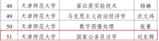 近日,天津市教委印发《关于公布第二批天津市级课程思政示范课程、课程思政优秀教材和首批天津市级课程思政优秀案例(本科)评选结果的通知》,公司刘东辉副教授主讲的《国家公务员法学》课程被认定为天津市级课程思政示范课程。课程团队成员包括:魏建新教授、郭庆珠教授、李敏副教授、张珩老师。
